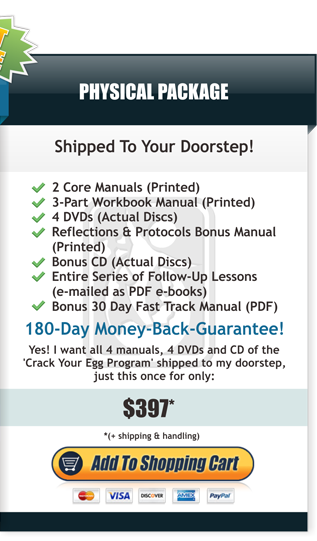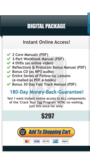 This manual gives you specific insights and step-by-step protocols that are expressly adapted for applying the Crack Your Egg-method to the areas of financial abundance, physical health, personal relationships and emotional turmoil.